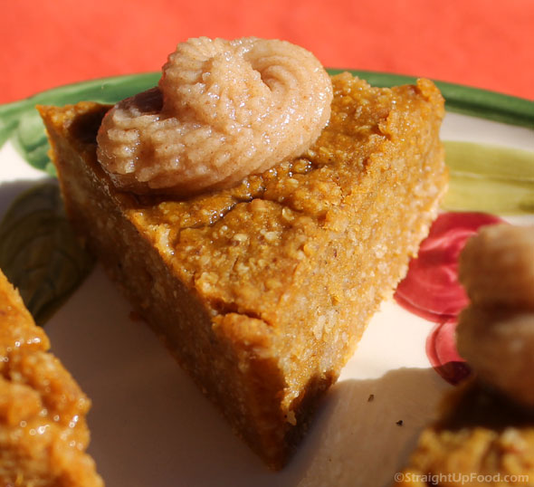 Above: You can also make mini pumpkin pies slices. After baking in a square pan and cooling, slice into three equal strips and then cut out little pie slices as you go across each strip.